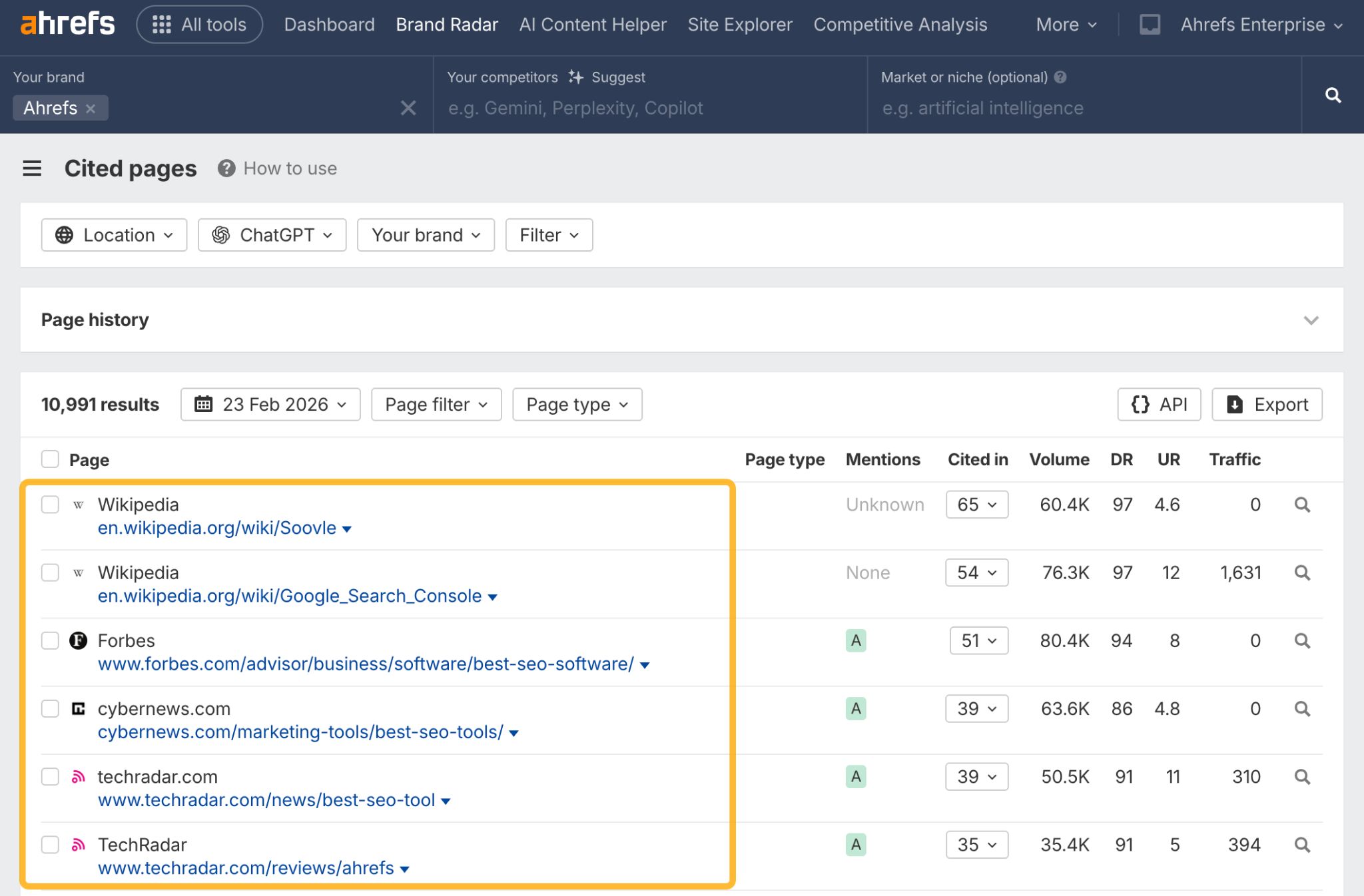 For example, looking at the top sources for Ahrefs’ brand mentions in AI responses, ahrefs.com wasn’t cited as a primary source in ChatGPT.