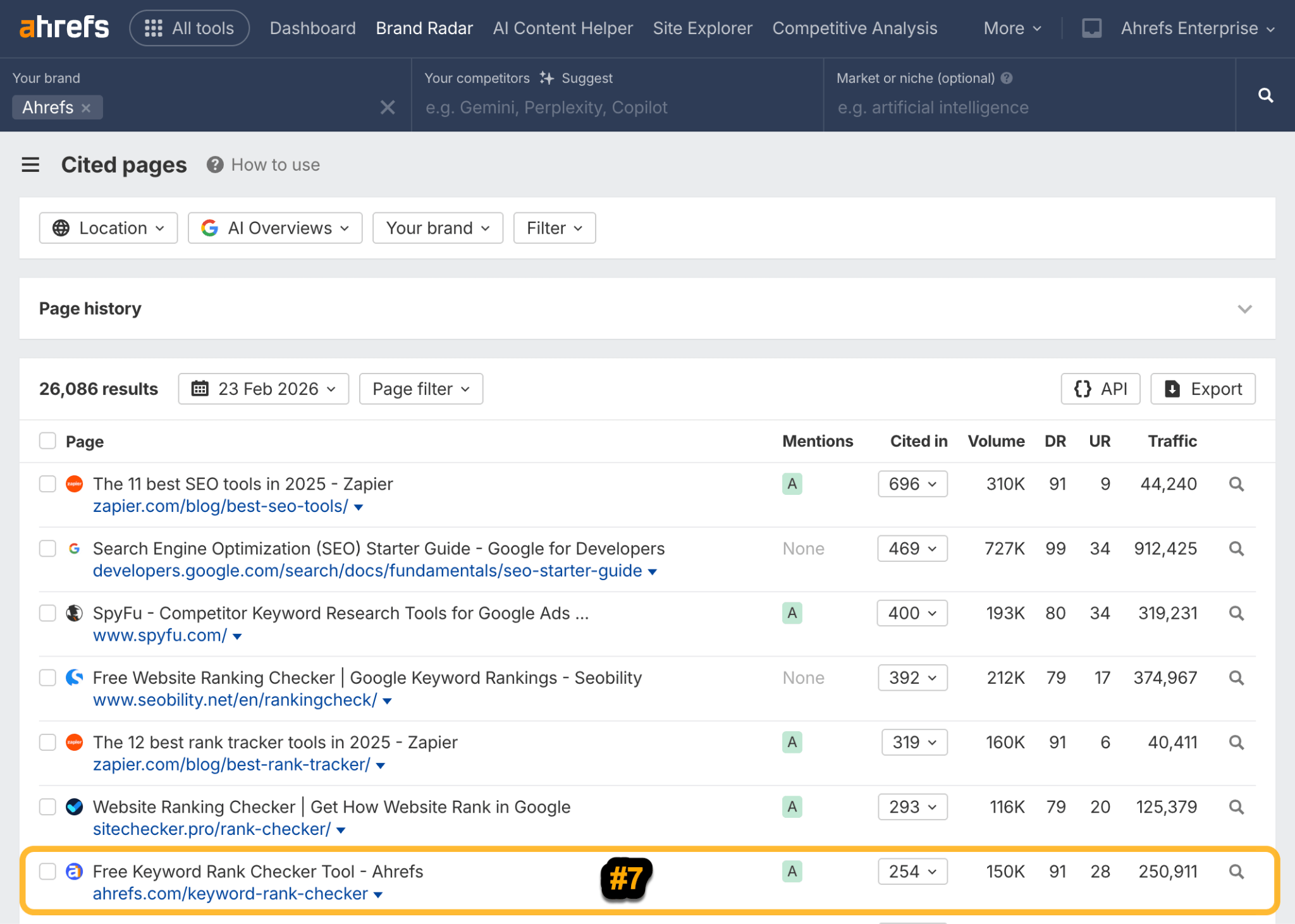 We fared much better in AI Overviews on position #7, yet we still weren’t showing up in the top three.